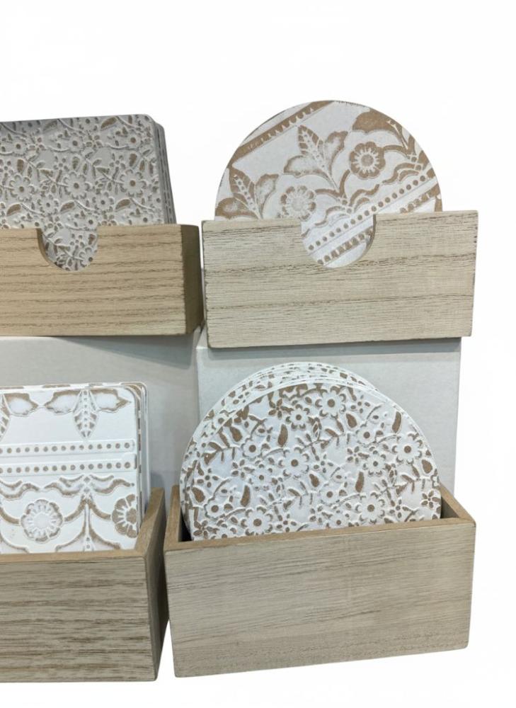 - طقم فاخر من كوسترات رخامية أنيقة بتصاميم متنوعة مستوحاة من النقوش الكلاسيكية والزخارف العصرية.